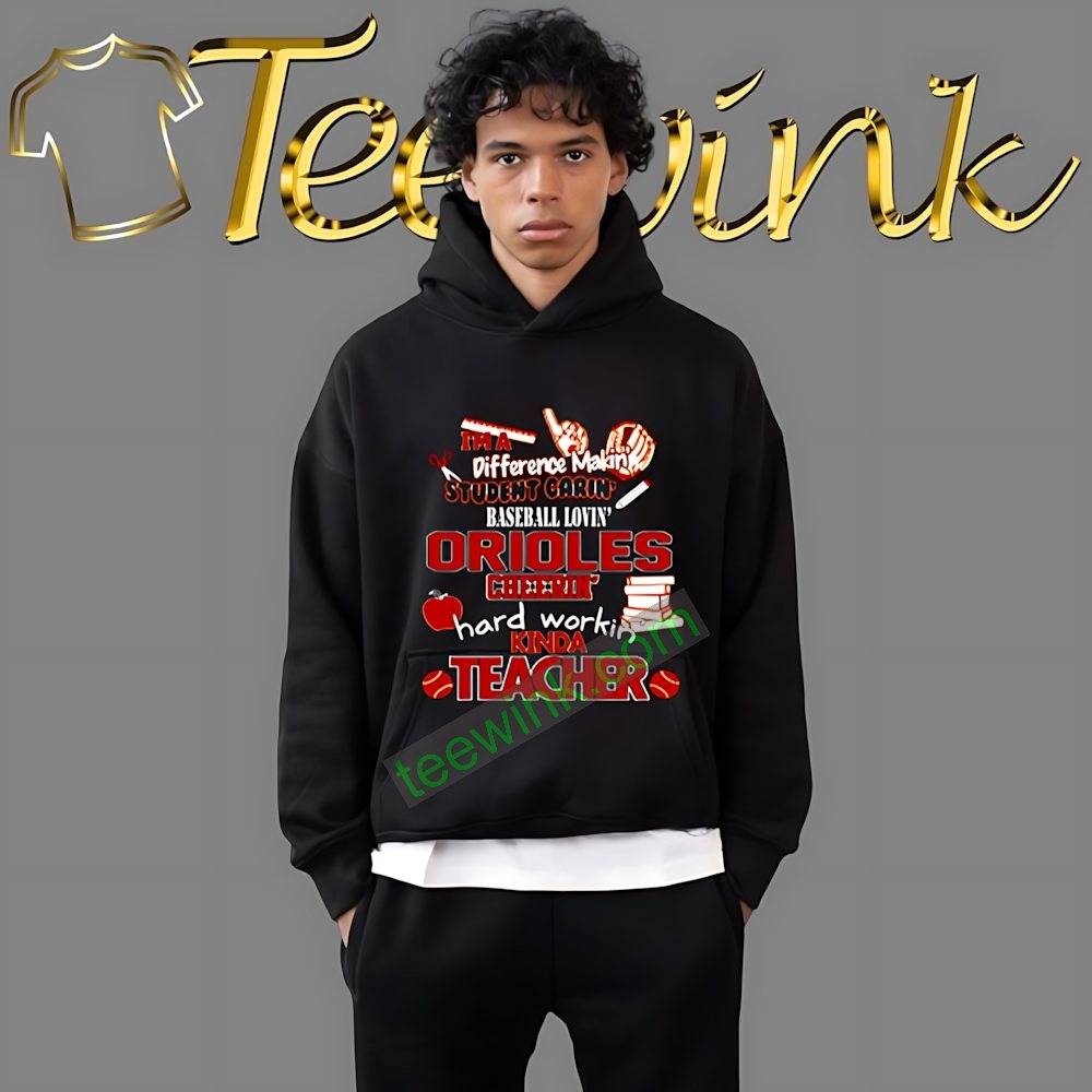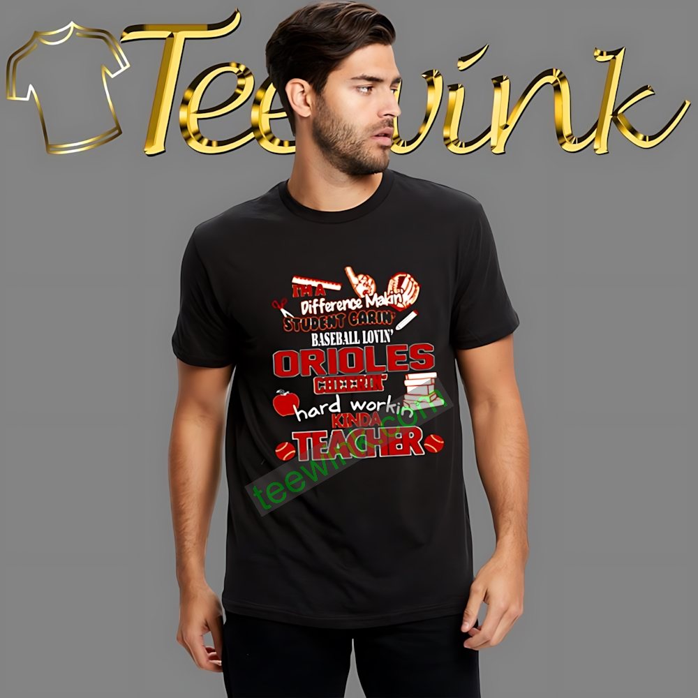 Baltimore Orioles MLB I’m A Difference Making Student Caring Baseball Loving Kinda Teacher Shirt by Teewink, designed to capture the essence of your passion for teaching and your love for baseball. Crafted from premium cotton, this Orioles teacher baseball shirt promises unmatched comfort, making it perfect for long days in the classroom or cheering from the stands.