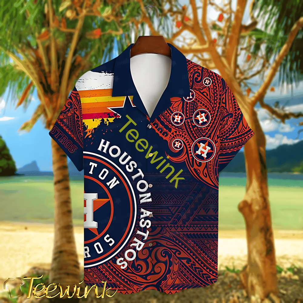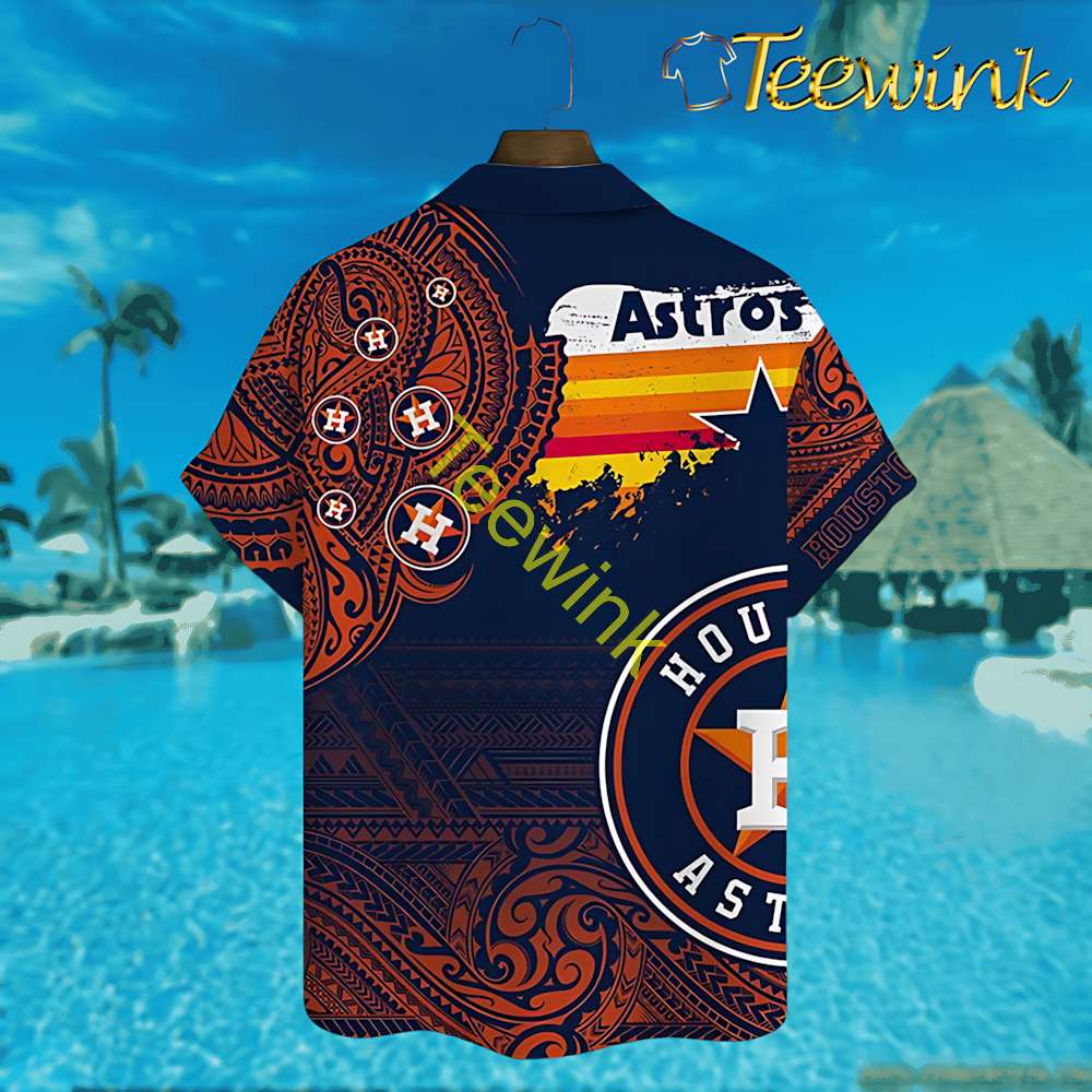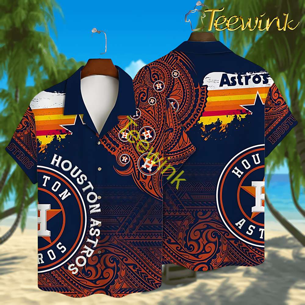 Imagine your dad sporting this incredible shirt on game day, feeling the comfortable, breathable polyester fabric against his skin. The vibrant colors and intricate tribal design capture the electrifying energy of the Astros, making him the most stylish fan in the stands. He’ll appreciate the superior quality and MLB fiery island style, ensuring this shirt will last through countless games and summer barbeques.