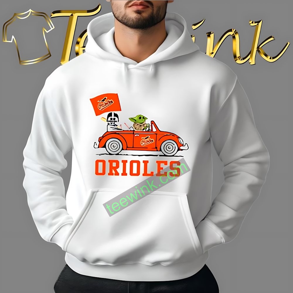 Product information of "MLB Baseball Baltimore Orioles Darth Vader Baby Yoda Driving Star Wars Shirt"