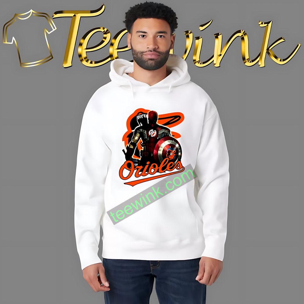 Don’t miss out on this chance to express your unique fandom and team pride effortlessly. Whether you’re at the ballpark or hanging out with friends, this Avengers-inspired baseball tee will help you stand out as a true fan. Embrace the crossover of the century—grab your MLB Captain America Thor Spider Man Hawkeye Avengers Endgame Baseball Baltimore Orioles Shirt from Teewink today and let your passion speak for itself!