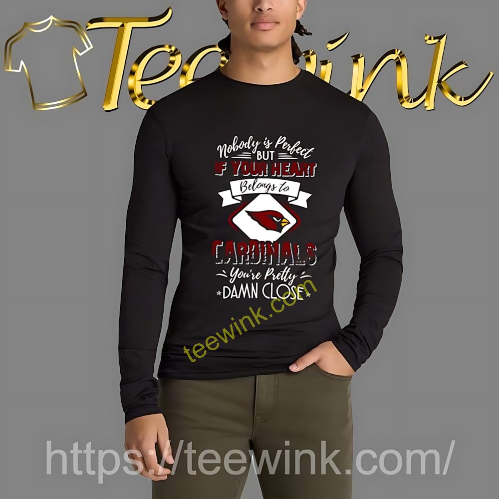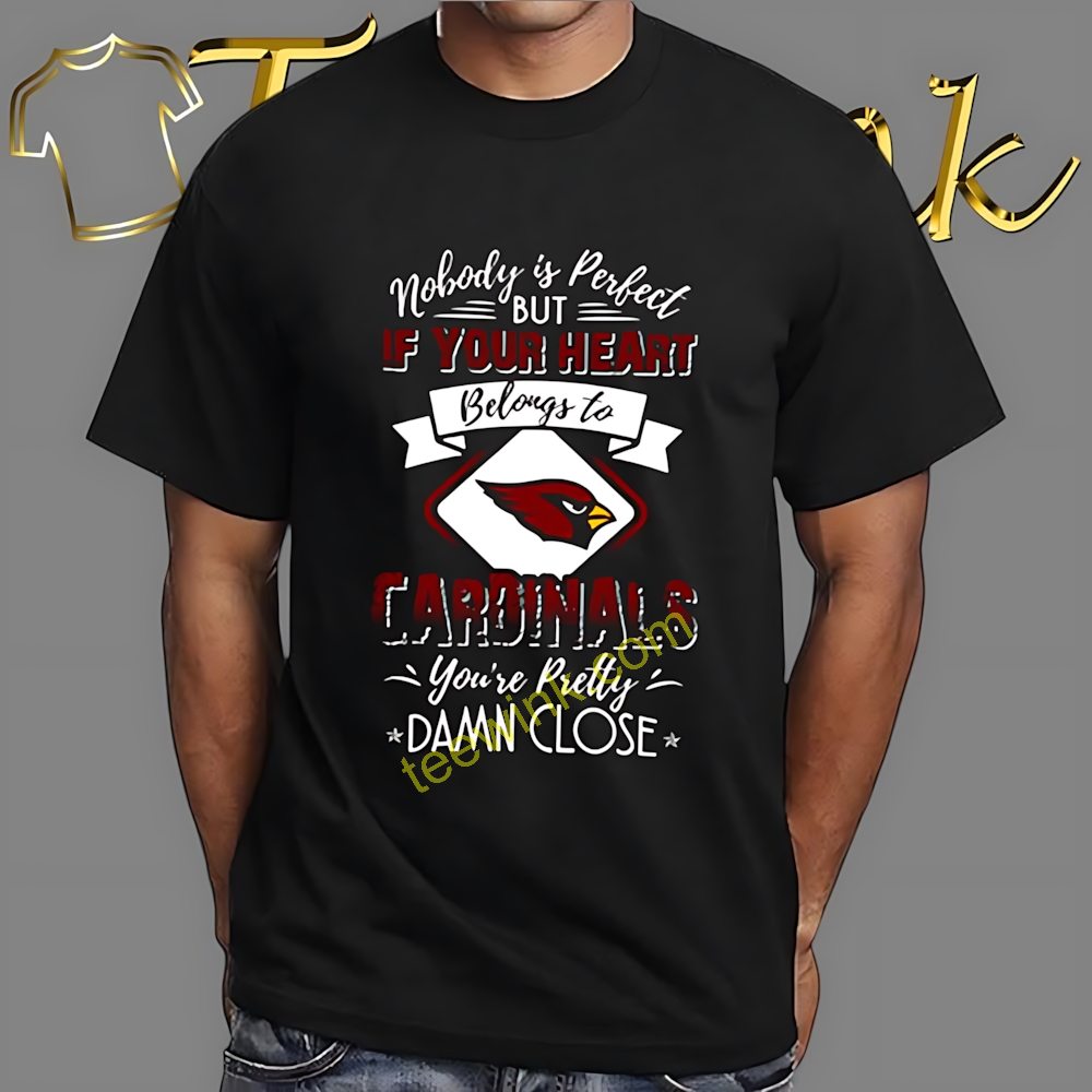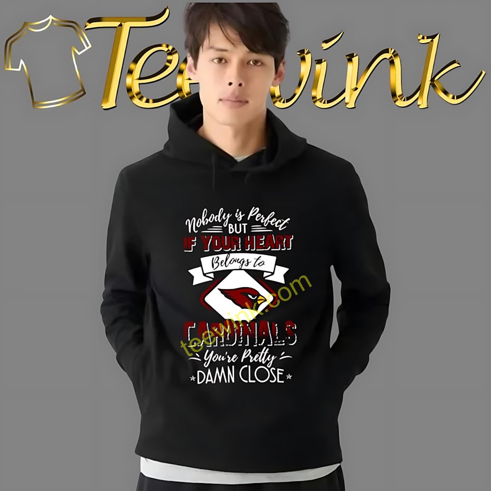 Whether you’re headed to a game, a tailgate party, or simply enjoying a casual day out, this shirt is your perfect companion. The bold, eye-catching design features the phrase “Nobody Is Perfect But If Your Heart Belongs To Cardinals You’re Pretty Damn Close,” making it clear where your loyalty lies. Showcasing your team spirit has never been this fashionable.